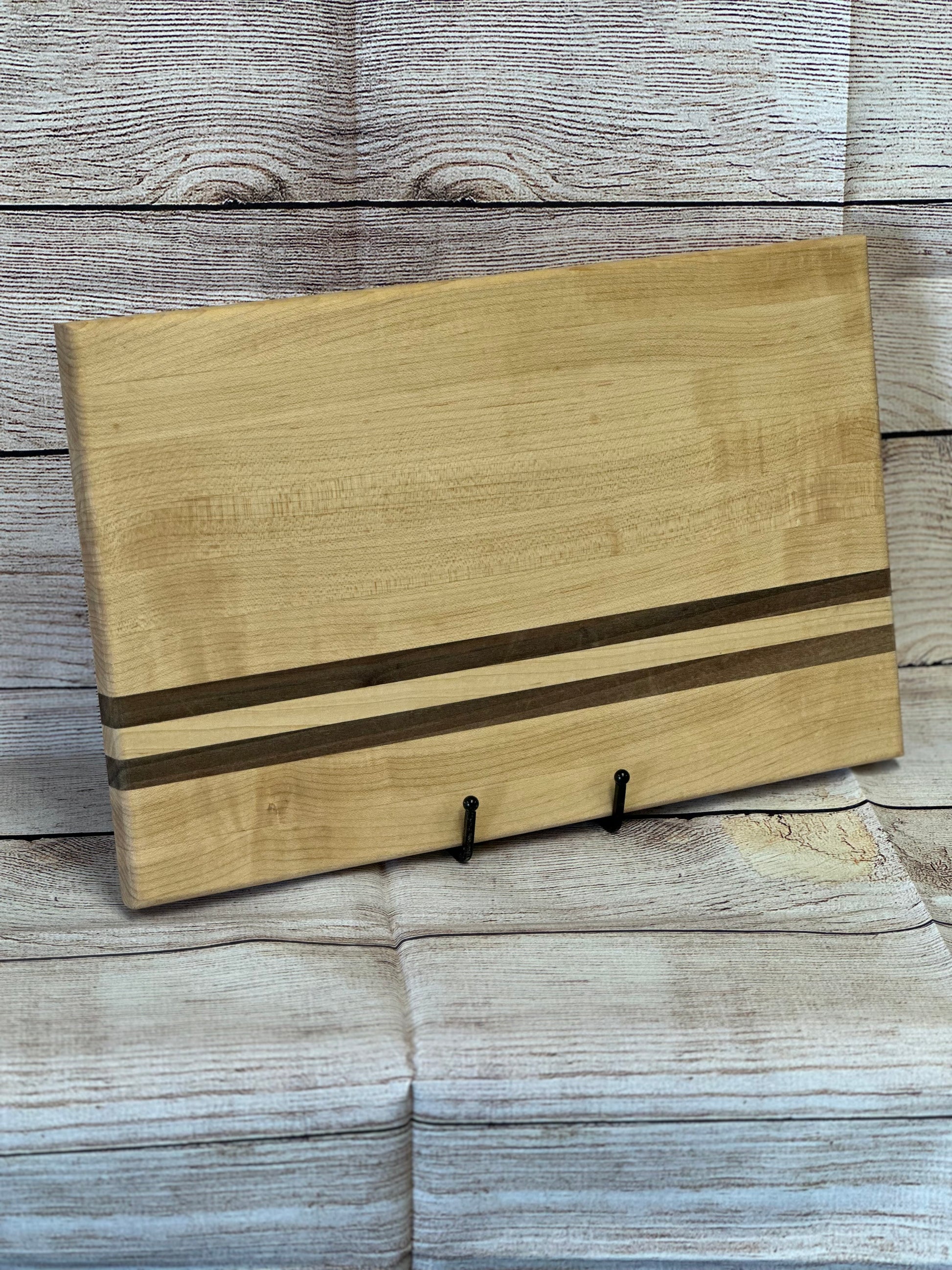 This is our original cutting board produced for the past 10 years. The GEN-1 boards are 15x9x.875. made from all hardwood walnut and built to last for a lifetime with proper care. All of the boards do not look at the same as the above picture due to wood grain patterns, however they are all built with the same care and passion to be the same.