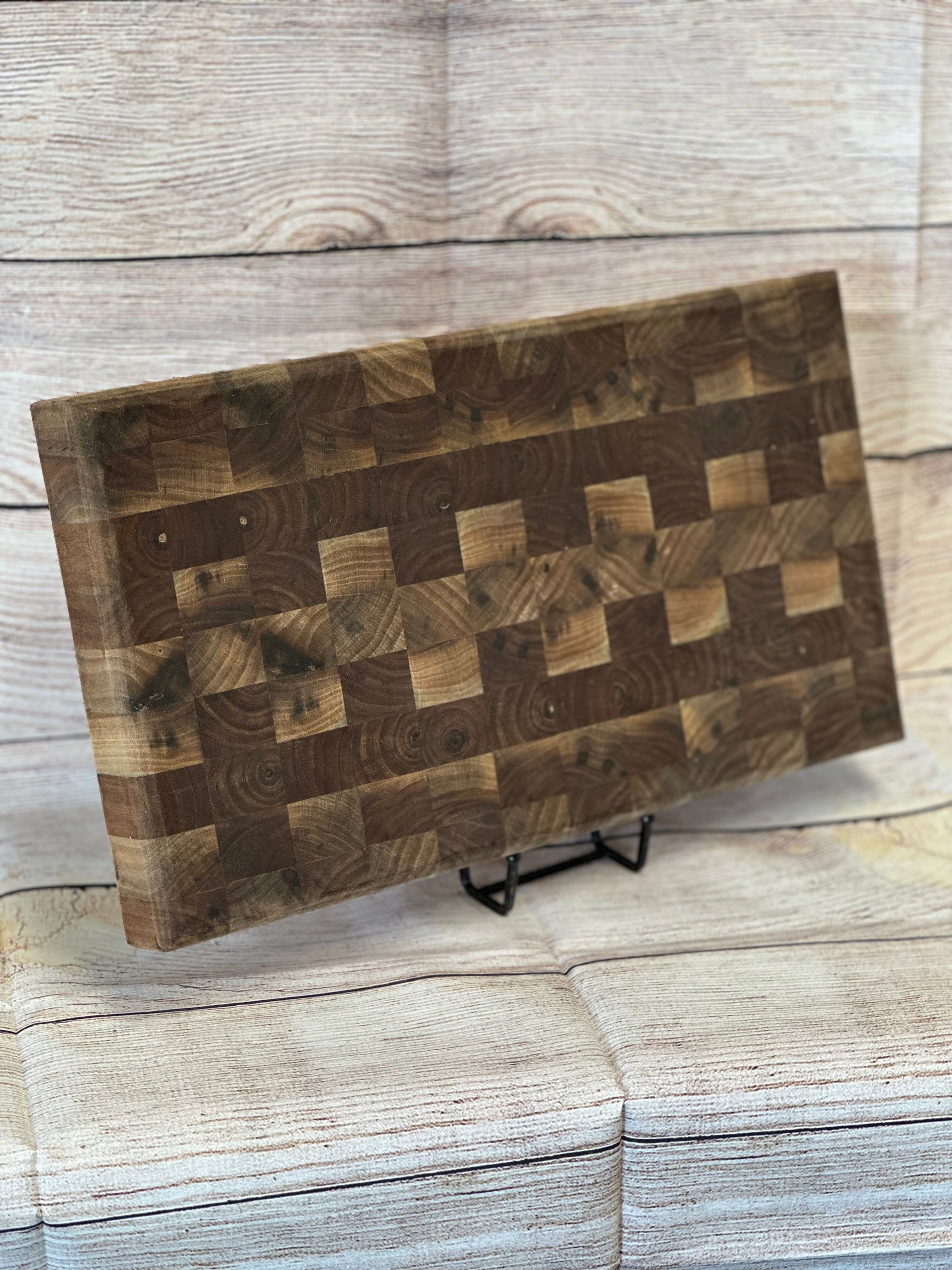 This is our original cutting board produced for the past 10 years. This board is 9x15x1.5. Made from all hardwood and built to last for a lifetime with proper care. All of the walnut boards do not look at the same as the above picture due to wood grain patterns, however they are all built with the same care and passion to be the same. All boards are finished with FDA approved Mineral Oil.